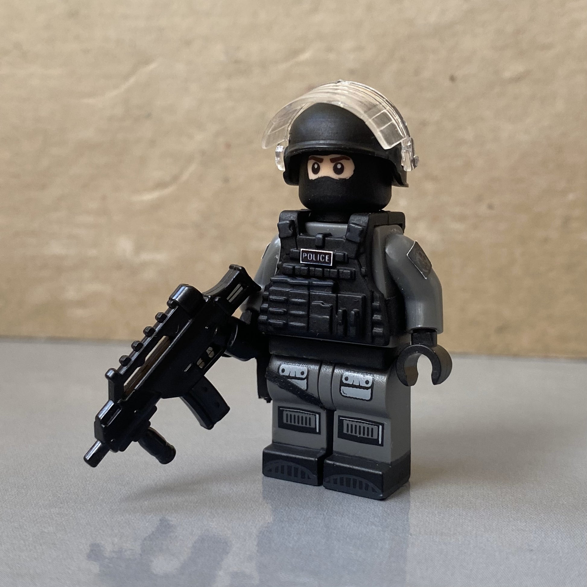 La figurine est composée du matériel qu'utilise ces policiers lors de leur intervention. On retrouve le HK G36, le glock ainsi que le casque lourd.